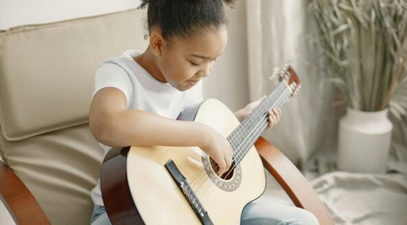 Fingers dance on frets with ease, guitar melodies ride the breeze